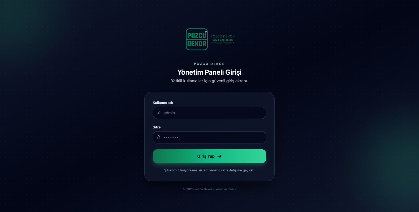Yönetim paneli üzerinden ürün, galeri, referans, blog yazıları ve sayfa içeriklerini kod bilmeden kolayca yönetebilirsiniz.